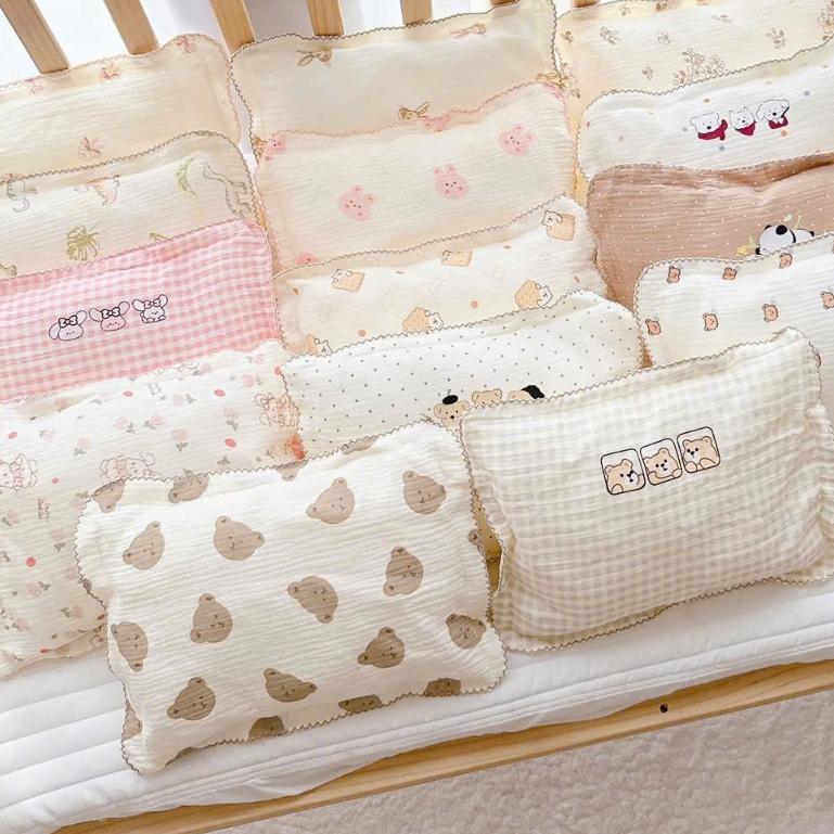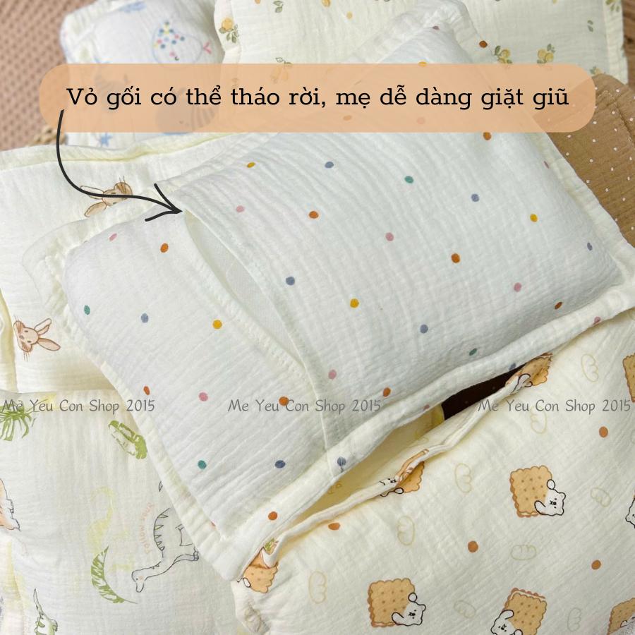 Gối xô cho bé sơ sinh, gối xô nhăn cotton 10 lớp thấm hút mồ hôi cực tốt, mềm mịn thoáng mát