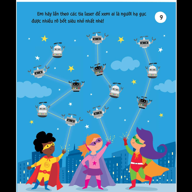 Nếu em đang muốn tìm kiếm những trò chơi giúp em thử thách trí óc và phát triển chỉ số IQ của mình, cuốn sách này chính là lựa chọn thích hợp nhất dành cho em đấy! Với hơn 90 hoạt động đầy hấp dẫn như tìm đường qua mê cung, phát hiện các điểm khác biệt giữa hai bức tranh, tìm từ ẩn trong ô chữ, hoàn thiện những bức vẽ còn dang dở…, cuốn sách không những giúp các em rèn luyện khả năng quan sát, tư duy, logic, tưởng tượng, mà còn giúp các em phát triển các kỹ năng đọc, viết, đếm số, so sánh, vẽ và tô màu nữa. Em hãy chuẩn bị sẵn bút chì, bút mực và bút màu để chinh phục những thử thách cực kỳ thú vị này nhé!