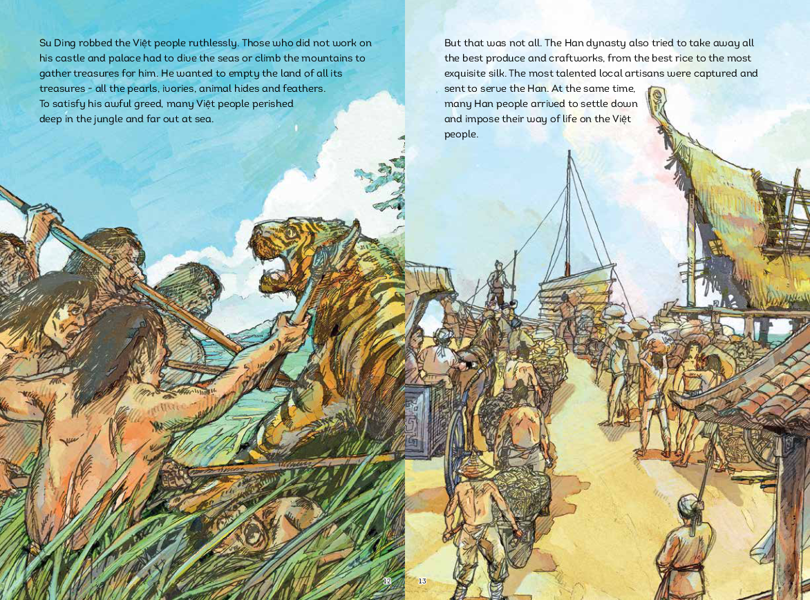 Mua tại TiktokThe series A History of Vietnam in Pictures presents the history of Vietnam in a brief, interesting and systematic way through concise tales and beautiful pictures. The Trưng Ladies were Trưng Trắc and Trưng Nhị, two best known female heroes in Việt Nam. Together with her sister, Trưng Trắc led an uprising against the Hán invaders, liberated the country and became Queen. This infuriated the Hán Emperor. He ordered Mã Viện - a notoriously cunning general to invade Việt Nam again. On the sixth day of the second month in the lunar year Quý Mão (43 AD), faced with an enemy much stronger than their own army, the ladies threw themselves into the Hát river to avoid falling into the hands of the enemy.
