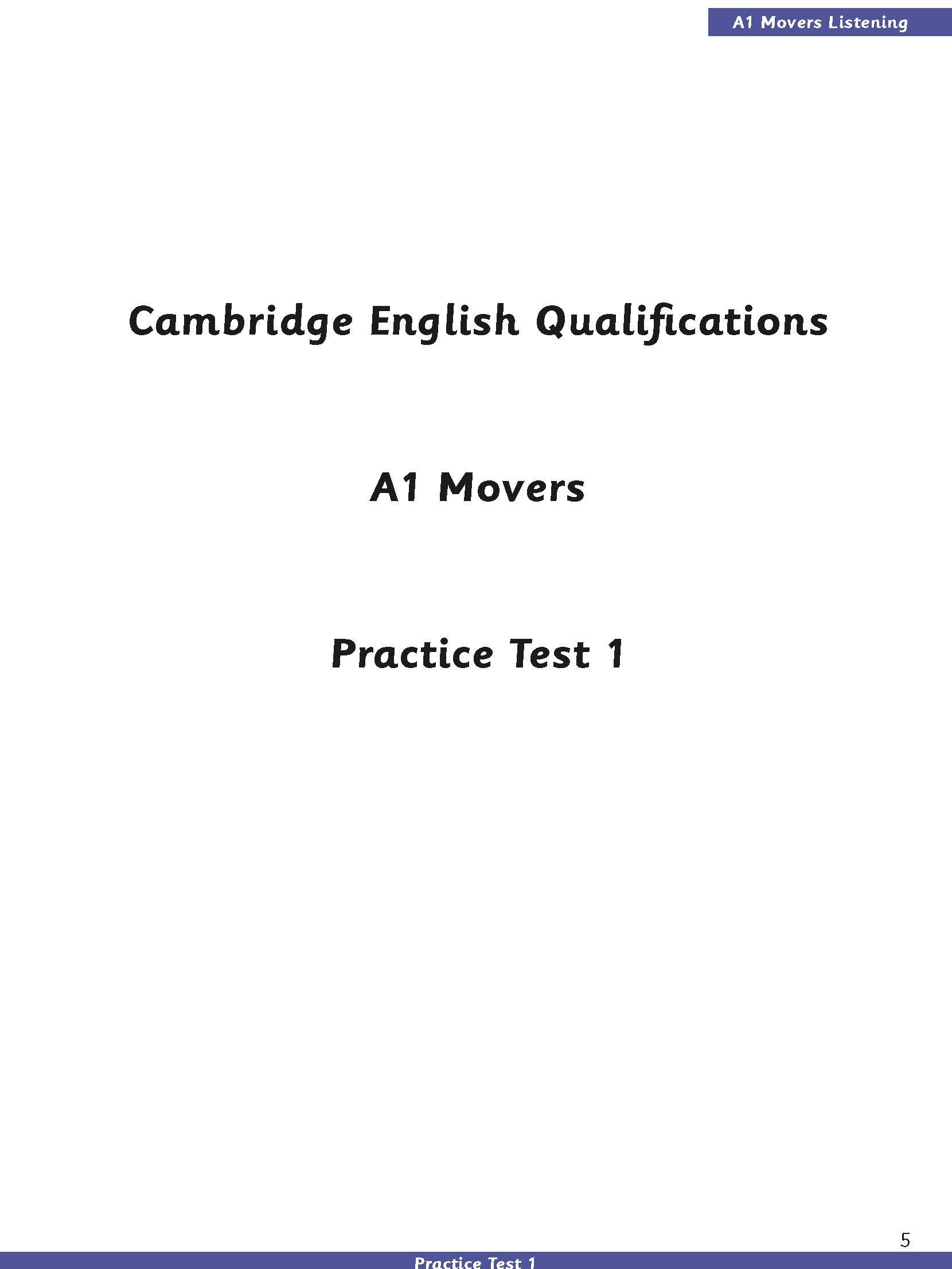 ✨A1 Movers - Practice Tests 1-5