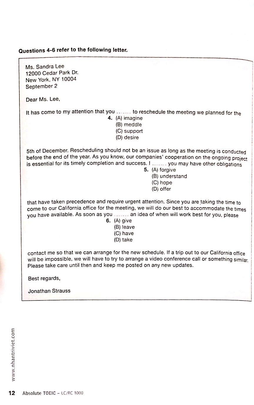 [TOEIC] Economy TOEIC LC 1000 Vol 1 Test 1