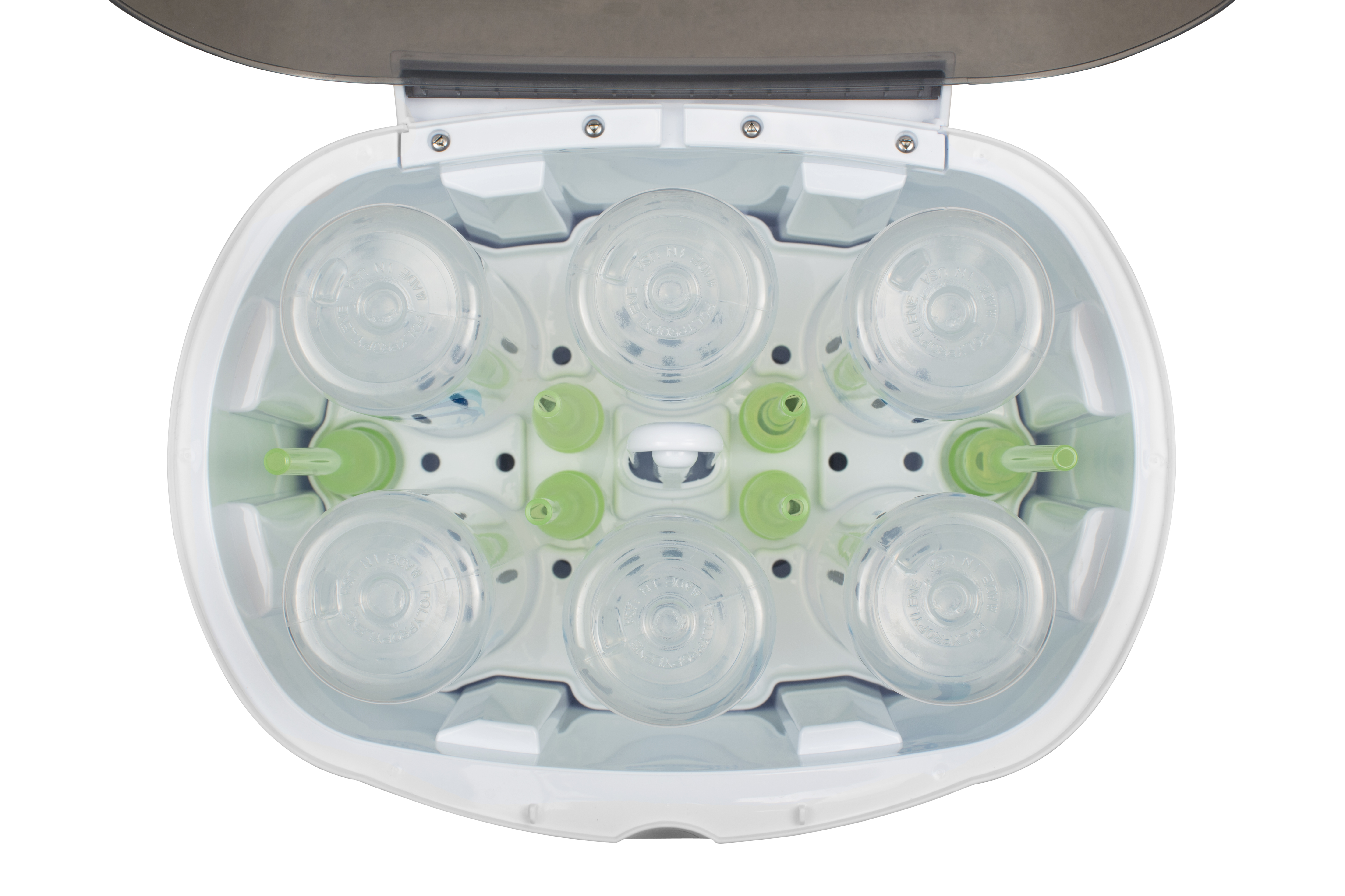 - Bình thiết kế đa chức năng 6 trong 1: đun nước nóng pha sữa, hâm sữa, nấu bằng hơi nước, pha trà và tiệt trùng bình sữa cho bé; - Chế độ hẹn giờ giữ ấm