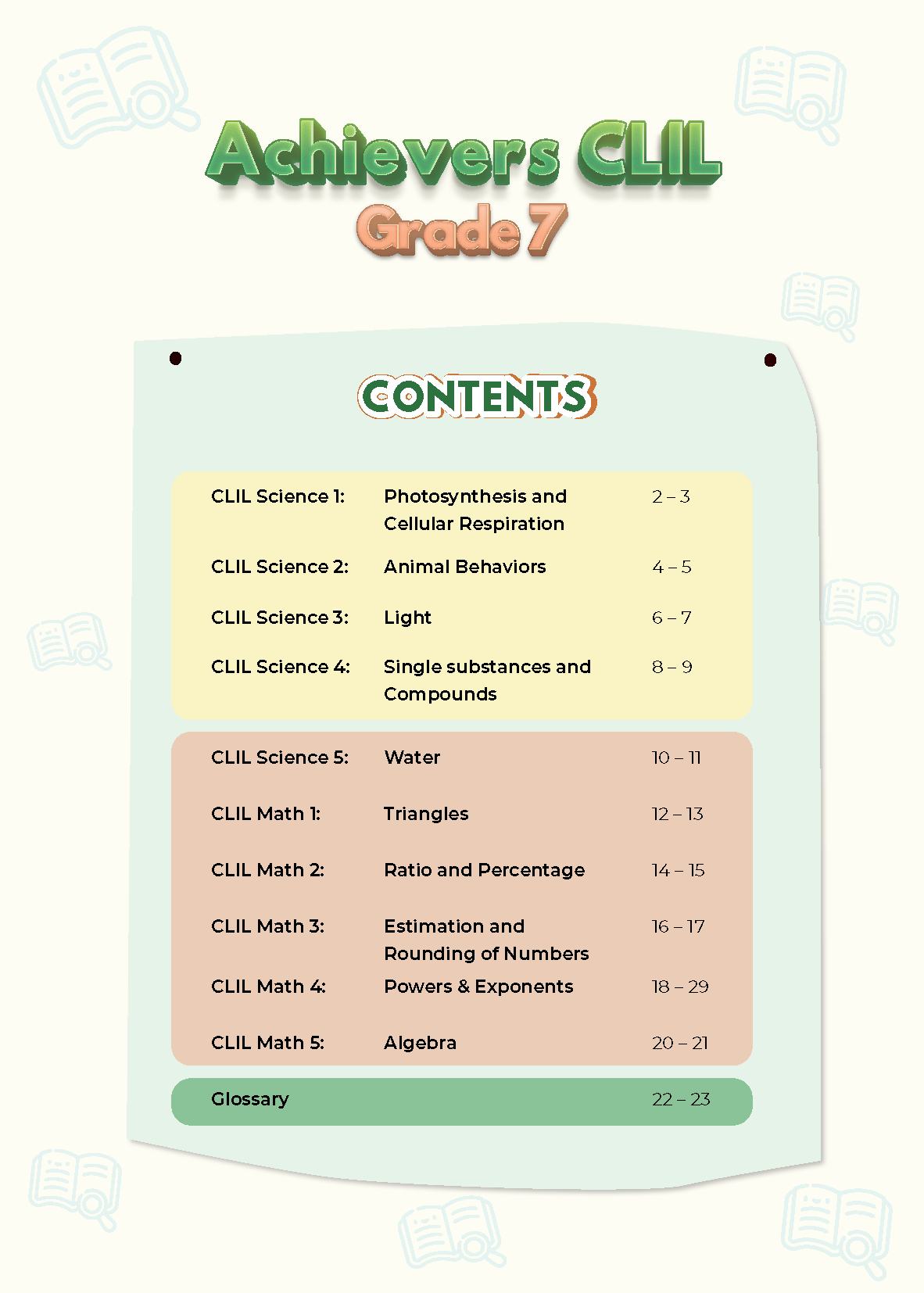 Achievers 7. CLIL book. Pages 2, 3, 8.