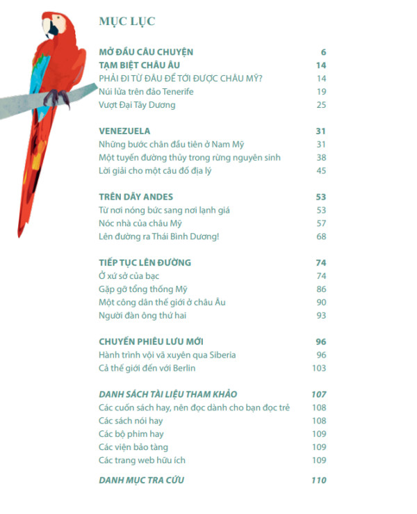 “Alexander von Humboldt – Khao khát khám phá những vùng đất lạ” Dành cho các bé từ độ tuổi 9+. Cuốn sách này cũng cố gắng để các cuộc đối thoại và bối cảnh lịch sử