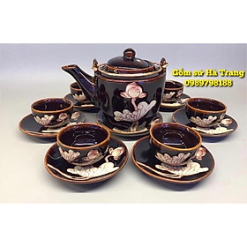 Bộ ấm chén Búp Sen men hoả biến cao cấp Bát Tràng