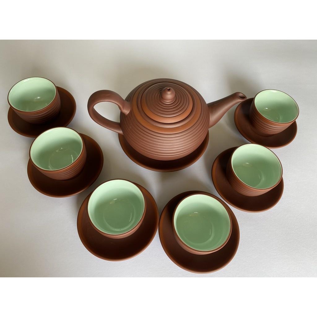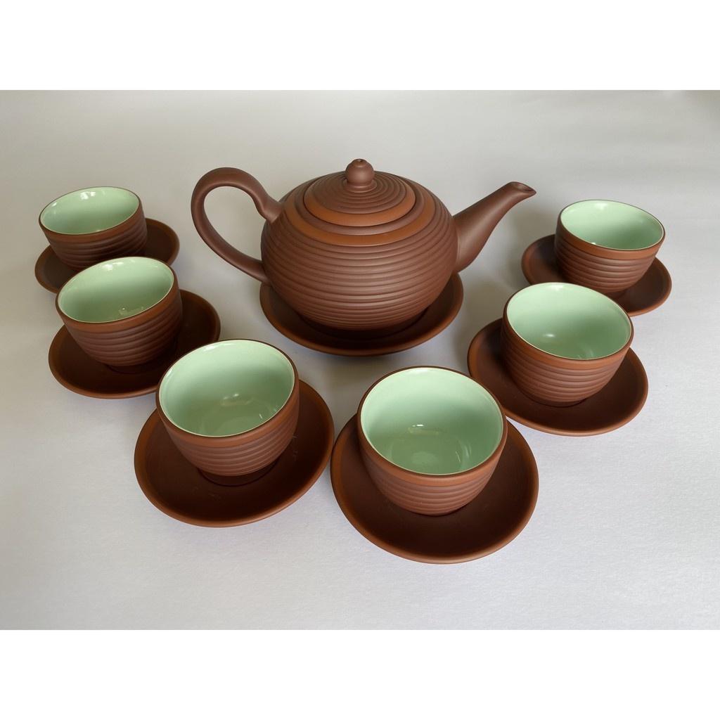 - BỘ SẢN PHẨM GỒM: 1 ẤM TRÀ, 6 CHÉN, 6 ĐĨA KÊ, 1 HỘP CHÈ, 1 GẠT TÀN, 1 ỐNG TĂM - DUNG TÍCH ẤM: 660ml; ĐƯỜNG KÍNH MIỆNG CHÉN: 5.7cm - CHÉN CAO: