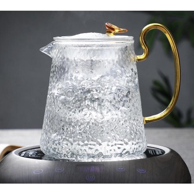 ✨Ấm Pha Trà Thủy Tinh Có Lõi Lọc Quai Vàng Cao Cấp 500ml