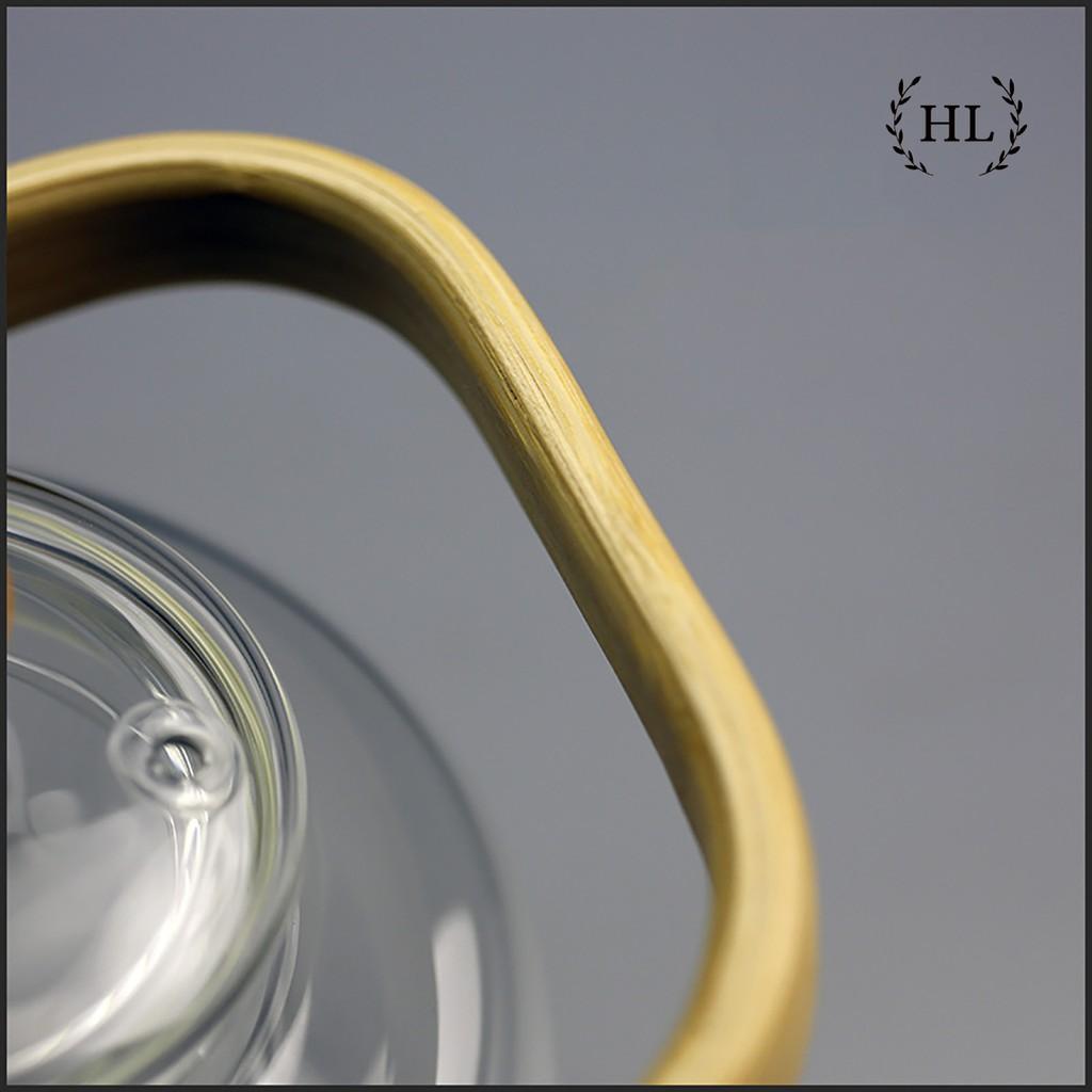 ấm pha trà thủy tinh có quai xách và nắp gỗ, lõi lọc trà Ấm chịu nhiệt nấu được trên bếp điện và bế