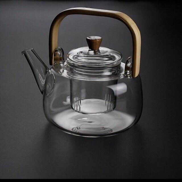 Ấm thuỷ tinh nắp gỗ 600ml Lõi lọc thuỷ tinh Chịu nhiệt từ -30-150 độ c Nắm gỗ chắc chắn dễ dàng vệ sinh Quai thiết kế dễ cầm và chắc chắn