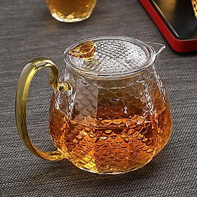 Ấm trà lọc thuỷ tinh có dung tích 600ml Ấm được thiết kế sang chảnh quai cầm vồng dễ cầm Có lõi lọc lò xo ở đầu vòi Phù hợp pha các loại trà hoa