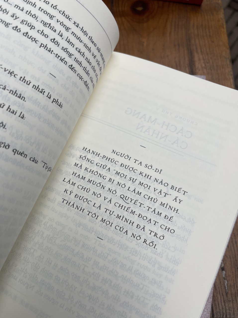Tác giả không tập trung khai thác, phân tích tâm lý con người như những sách nghệ thuật sống, rèn luyện nhân cách phổ biến hiện nay. Ông cũng không lên gân, dạy dỗ phải làm điều này điều nọ để có được hạnh phúc trong cuộc sống. Tác giả hướng người đọc đến việc nhận thức được giá trị sự vật như nó vốn có, hiểu được bản ngã của mình để hành động phù hợp với hoàn cảnh. Để trở nên một con người hoàn tòan, theo tác giả, con người cần phải làm hai điều: cải tạo cá nhân và cải tạo xã hội. Đây cũng là chủ đề xuyên suốt trong các chương của cuốn sách.