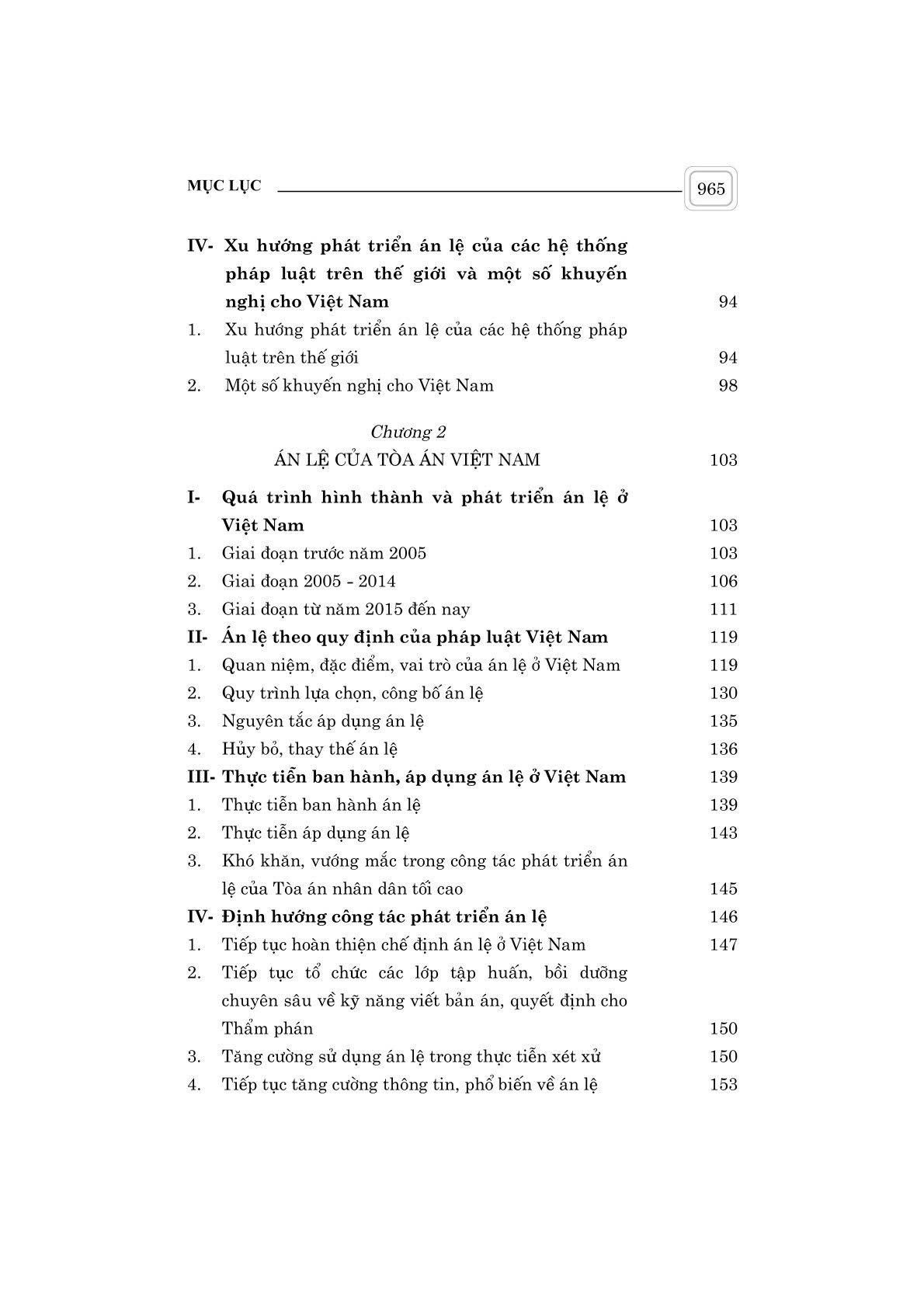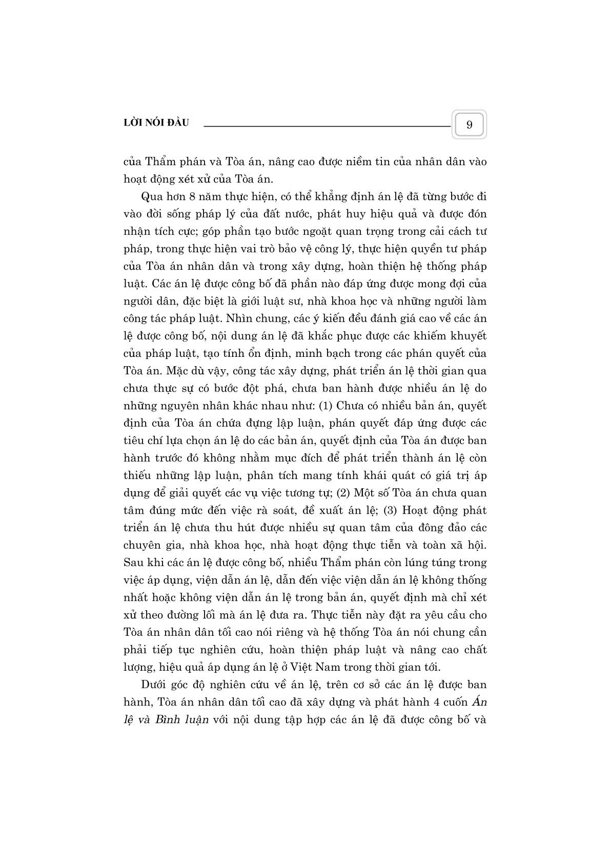 Cuốn sách là tài liệu thiết yếu cho Thẩm phán, Hội thẩm, Thư ký Tòa án, luật sư, giảng viên, sinh viên luật và những ai quan tâm đến án lệ.