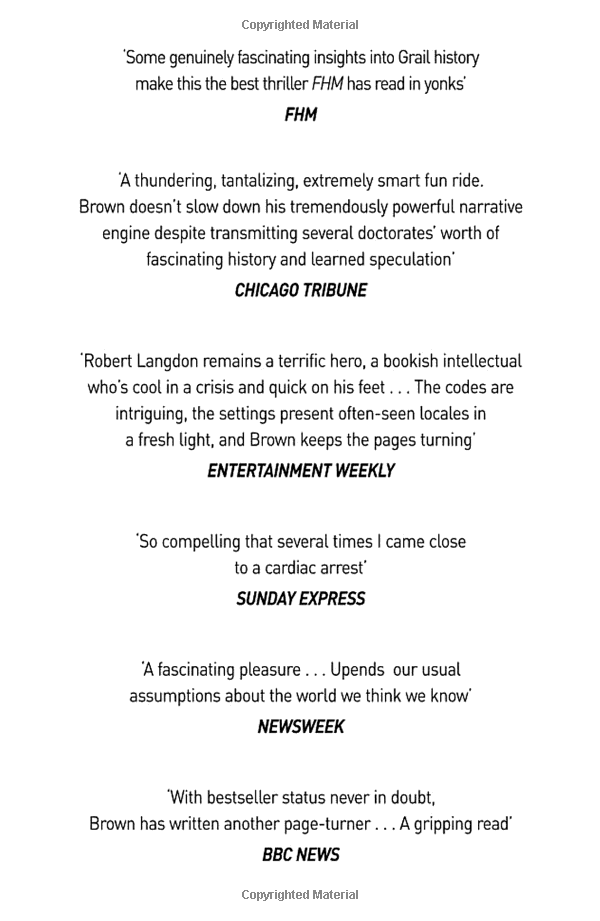 The Da Vinci Code THE #1 WORLDWIDE BESTSELLING PHENOMENON, WITH MORE THAN 85 MILLION COPIES SOLD “Blockbuster perfection . . . a gleefully erudite suspense novel.” —The New York Times “A pulse-quickening, brain-teasing adventure.” —People