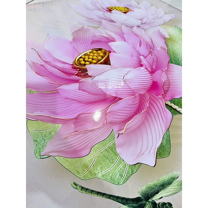 ✨(ẢNH THẬT) Tranh dán tường 3D hoa sen hồng tranh trang trí decor khổ dọc
