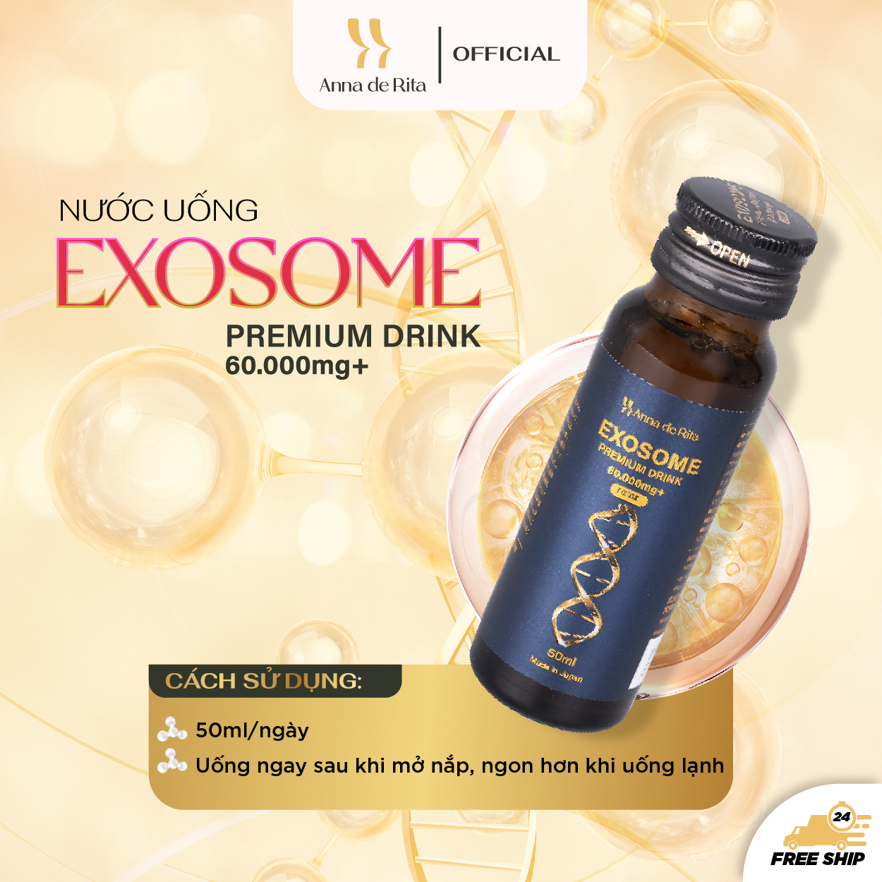 - Sản phẩm EXOSOME Thương hiệu Anna de Rita có nguồn gốc và xuất xứ 100% từ Nhật Bản. Là Sản phẩm đầu tiên chuyển hóa Exosome dạng làm đẹp bên ngoài thành dạng uống