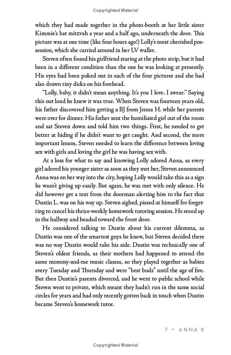 Anna K is the golden girl of New York high society. She's beautiful, she's kind, she's unbelievably rich, and she has the perfect boyfriend.