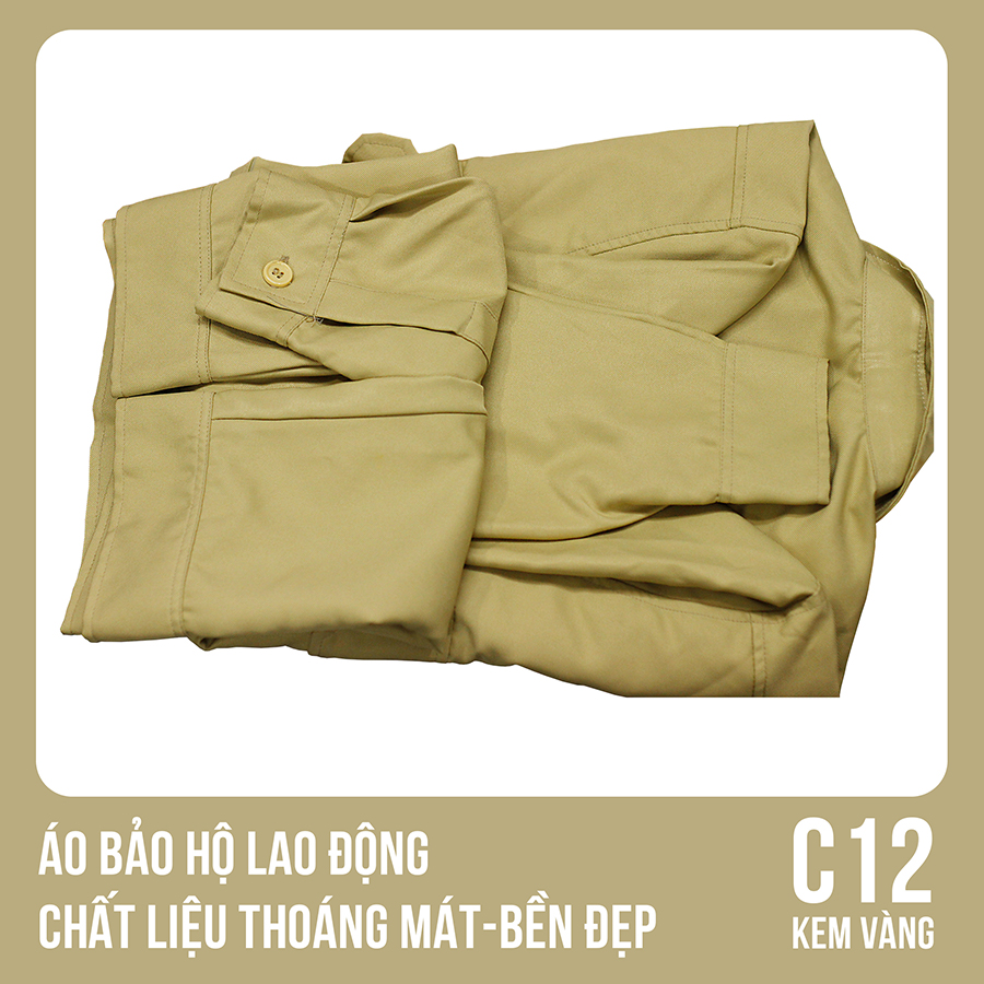 ✨Áo bảo hộ lao động, chất liệu thoáng mát, bền đẹp - Mã C12 (Kem Vàng)