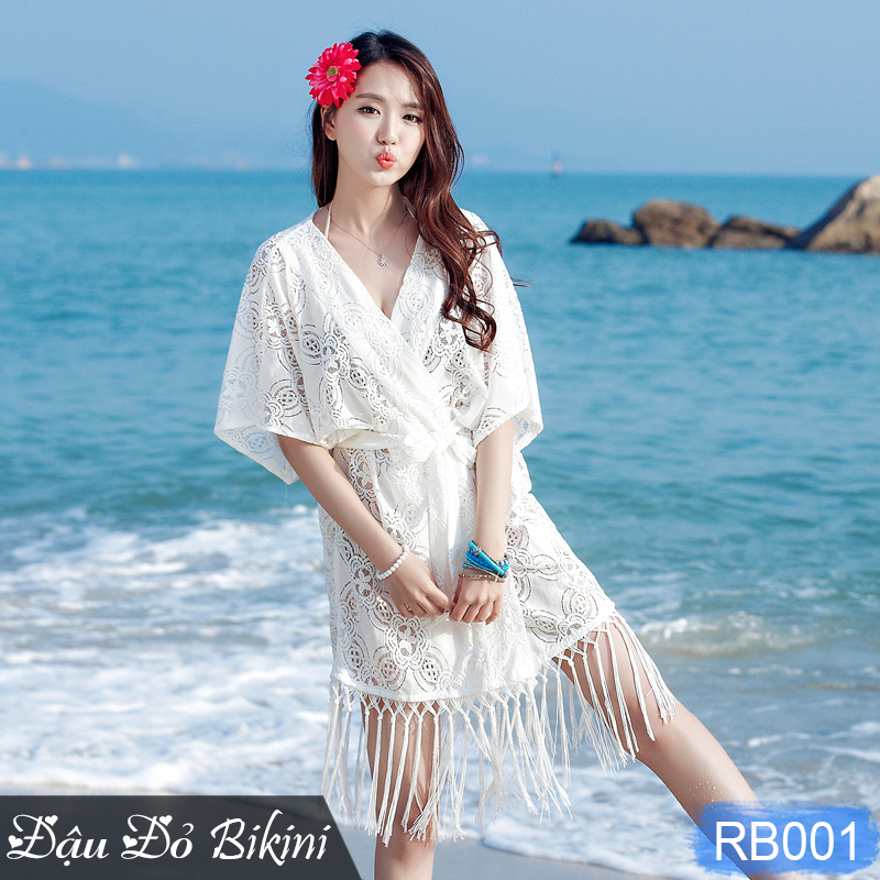 ✨Áo choàng ren cao cấp, dáng kimono khoác dài phối rua điệu, có dây lưng tiện dụng, dễ phối đồ khi đi biển, du lịch, party | RB001