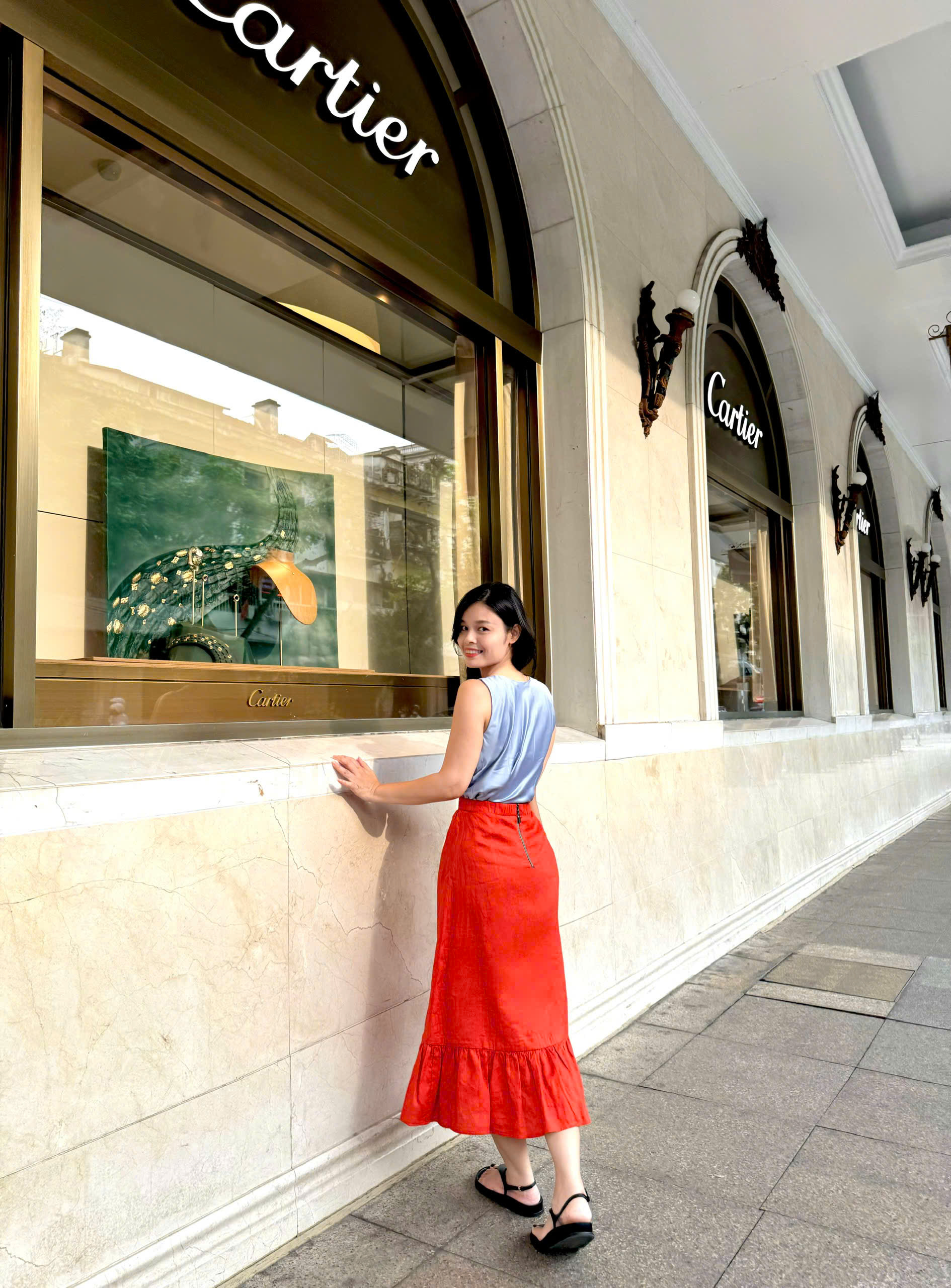 - Nghệ nhân cắt may: Lê Liên. Cắt may thủ công tinh tế tại Hity Atelier, Nha Trang, Việt Nam Tựa như một dòng suối mát lành chảy trôi giữa ngày hè oi ả, áo cổ đổ Thanh Dải là một sáng tạo từ Hity mang trong mình triết lý về vẻ đẹp bình yên và tự tại. Điểm nhấn đắt giá của thiết kế nằm ở phần cổ đổ được xử lý khéo léo, tạo nên những nếp gấp mềm mại tựa những gợn sóng lăn tăn trên mặt hồ tĩnh lặng. Chúng buông lơi một cách tự nhiên, tôn vinh bờ vai thanh tú và chiếc cổ cao của người phụ nữ mà không cần đến bất kỳ chi tiết cầu kỳ nào. Trên nền chất liệu polyester satin, từng chuyển động của người mặc đều được phản chiếu qua bề mặt óng ả, mang đến cảm giác trượt nhẹ trên da đầy tinh tế. Sắc xanh băng thanh (ice-blue) không chỉ là một lựa chọn màu sắc, mà còn là một tuyên ngôn về sự nhã nhặn, giúp tôn lên mọi sắc da và dễ dàng kết hợp với các trang phục khác. Quý cô có thể kết hợp "Thanh Dải" cùng một chiếc chân váy bút chì cho môi trường công sở chuyên nghiệp, hay biến hóa cùng quần culottes ống rộng cho buổi dạo phố cuối tuần. Dù trong bất kỳ hoàn cảnh nào, chiếc áo cũng sẽ là một lời khẳng định cho phong thái nhẹ nhàng, sang trọng và đầy khí chất HƯỚNG DẪN SỬ DỤNG Giặt bằng tay với nước dưới 30°C, nước giặt dịu nhẹ có độ pH trung tính không chất tẩy. Ngâm đồ từ 30-60 phút, sau đó vò nhẹ bằng tay. Xả 3 đến 4 lần nước lạnh làm sạch, sau đó nhấc đồ ra và giũ nước. hông vắt hoặc xoắn mạnh tay để tránh làm giãn vải. Không sử dụng nước tẩy / thuốc tẩy Không được sấy bằng máy. Nhiệt độ và tác động quay của máy sấy có thể làm hỏng, co rút, hoặc biến dạng vĩnh viễn chất liệu vải. Ủi ở nhiệt độ tối đa 110°C / 230°F, tương ứng với chế độ "Silk" hoặc ký hiệu một chấm (•) trên bàn ủi. Đặt một miếng vải bằng chất liệu tự nhiên lên mặt vải, ủi trên mặt vải, không ủi trực tiếp lên trang phục. Ưu tiên sử dụng bàn ủi hơi nước hoặc ủi khi trang phục còn ẩm. Lộn mặt trái khi ủi. Giặt máy ở nhiệt độ tối đa 30 độ C (86 độ F)