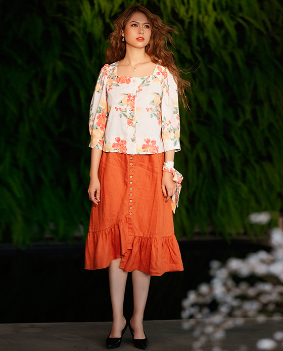 Áo Croptop Linen Mai Châu TOP186 Thời trang thiết kế Hity MÔ TẢ Living Coral - Cam san hô dù là gam màu nóng, tưởng chừng rất khó phối hợp nhưng tone màu với