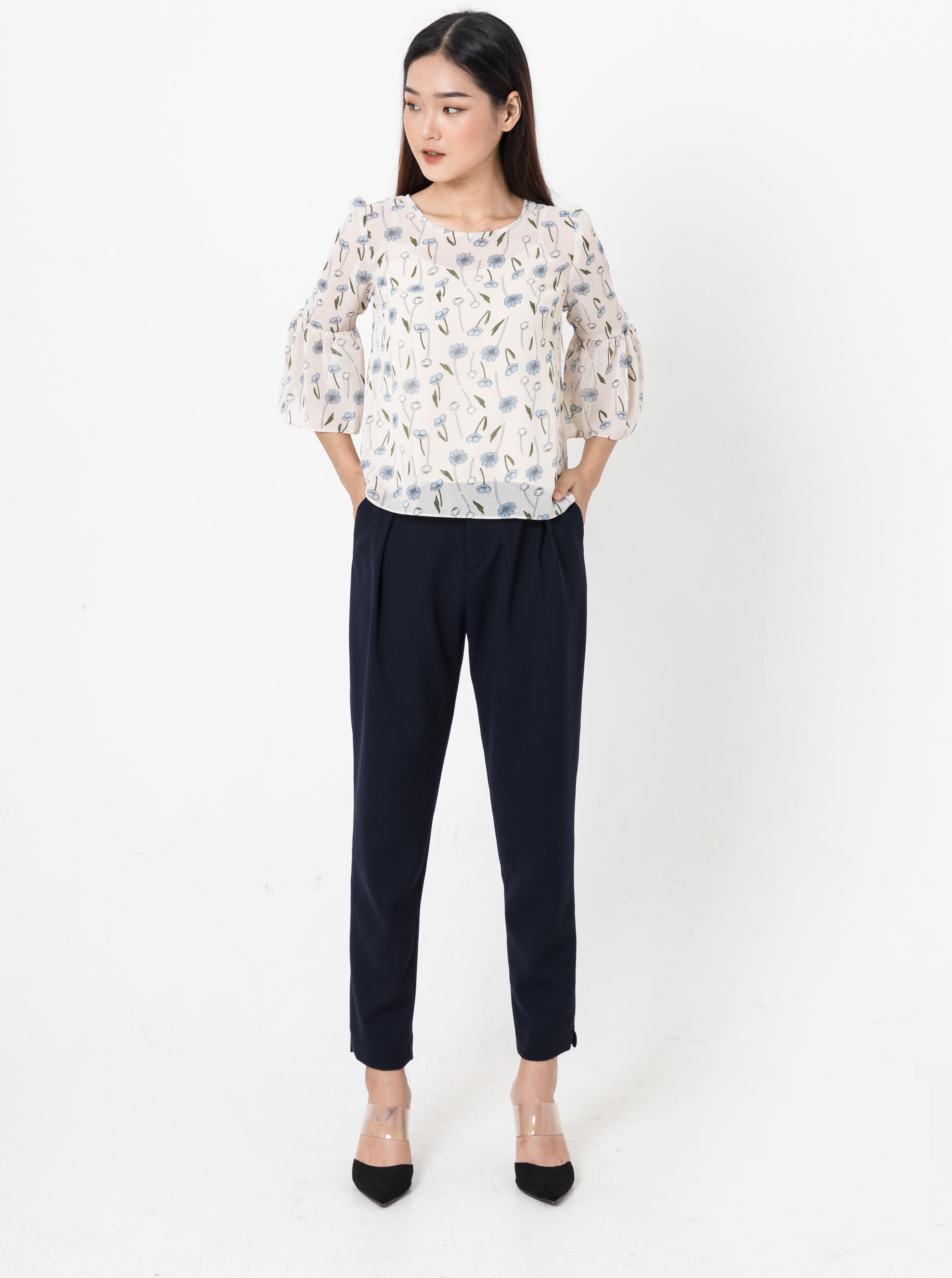 - Áo cổ tròn, tay lỡ nhún bèo