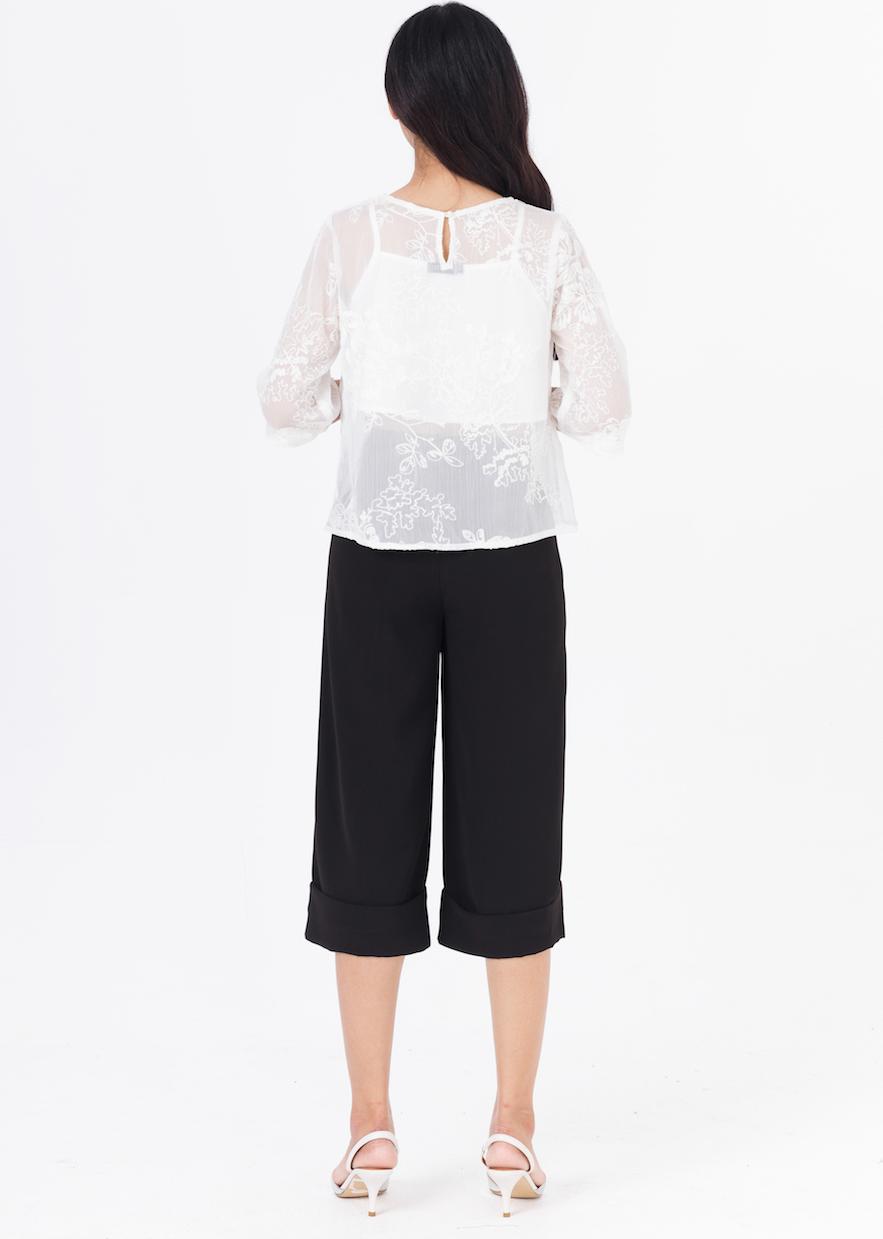 Áo croptop tay lửng vải tơ thêu tinh tế, thanh lịch, trẻ trung. Áo 2 lớp với áo lót trong rời, dáng croptop ngắn quyến rũ. Áo có thể phối với chân váy nữ tính, hoặc phối với quần tây, quần sóc hay quần cullote rộng trẻ trung