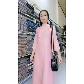 Chất liệu: vải voan gân tằm mịn Màu sắc: có 2 màu HỒNG + XANH Đủ size: M-L-XL-XXL Phù hợp: từ 44kg - 70kg Kiểu dáng: là 1 chiếc đầm rất sang giả áo dài