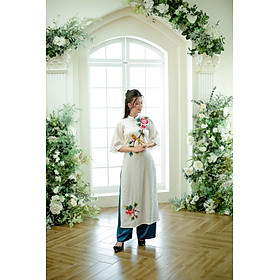 ✨Áo dài thiết kế trắng suông kết hoa ( size M )