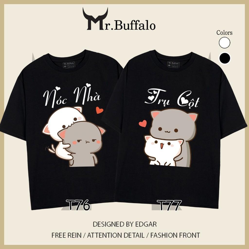 ✨Áo đôi, cặp tay lỡ unisex Mèo mochi nóc nhà, cột nhà dễ thương Mr.Buffalo