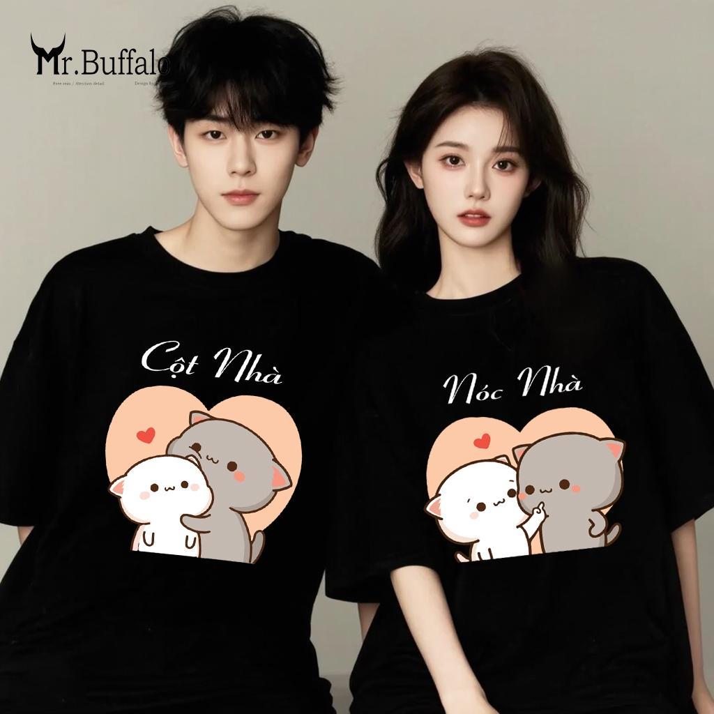 ✨Áo đôi, cặp tay lỡ unisex Mèo mochi nóc nhà, cột nhà dễ thương Mr.Buffalo T96T97