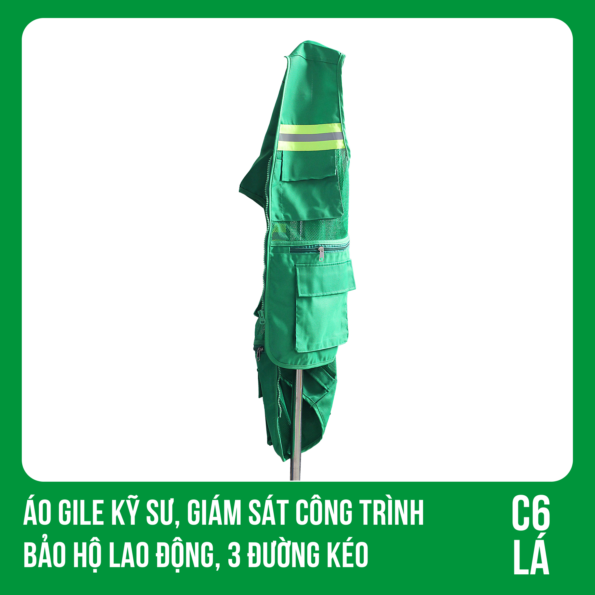 ✨Áo Gile Kỹ Sư, Giám Sát Công Trình, Bảo Hộ Lao Động, 3 Đường Kéo - Mã C6 ( LÁ )