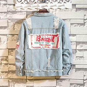 ✨Áo khoác jean nam from rộng vá rách JB1