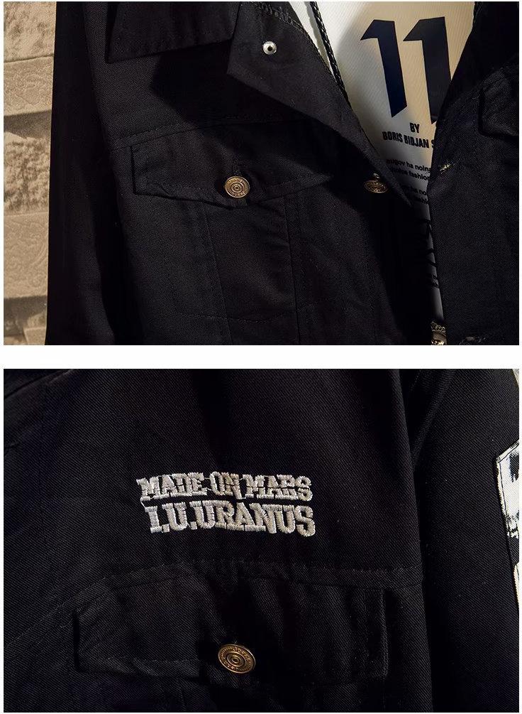 Chất liệu vải jean thô dày bền bỉ Màu vải được nhộm kỹ hạn chế ra màu khi giặt Form áo rộng trẻ trung Đường may tinh tế, chuẩn từng chi tiết Thiết kế vá