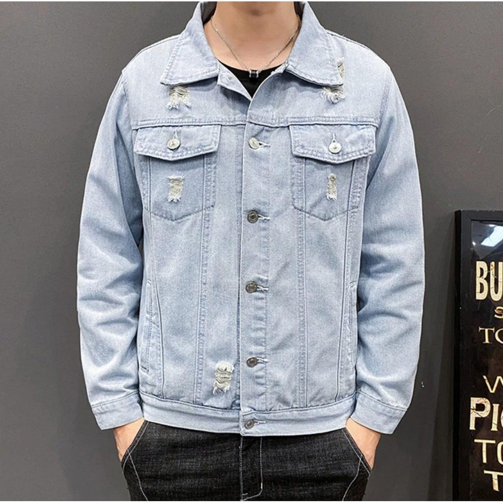 Áo khoác jean nam chống nắng, thiết kế rách đẹp và mẫu mới. Sản phẩm mang đến sự cá tính và thời trang đương đại với chất liệu jean cao cấp và chi tiết thiết