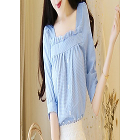 ✨Áo Kiểu Sọc Caro Nhí Xanh