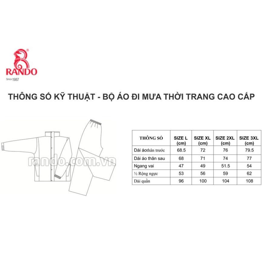 Áo mưa RANDO thành lập năm 1987, chuyên sản xuất các loại quần áo đi mưa cao cấp: áo mưa người lớn, áo mưa trẻ em, áo mưa poncho, áo mưa bộ, … và các