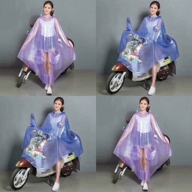 Aó mưa trong suốt ------------------------ - Không màu, không mùi, không thấm nước :"> - Dai, bền, thời trang, gấp nhỏ gọn có thể để được trong túi xách -Có tấm che mặt, k lo