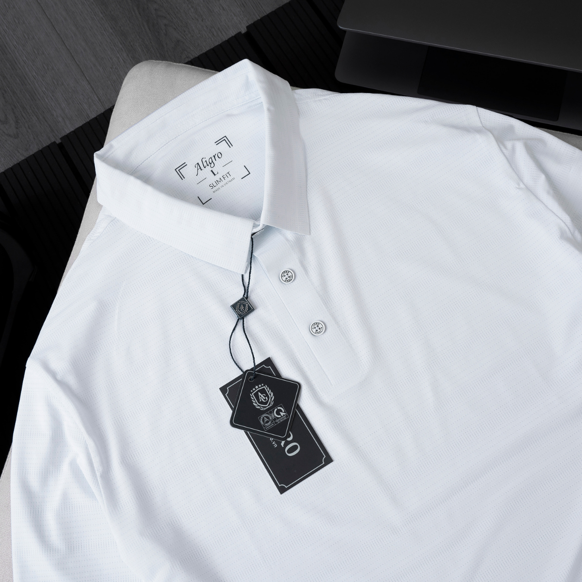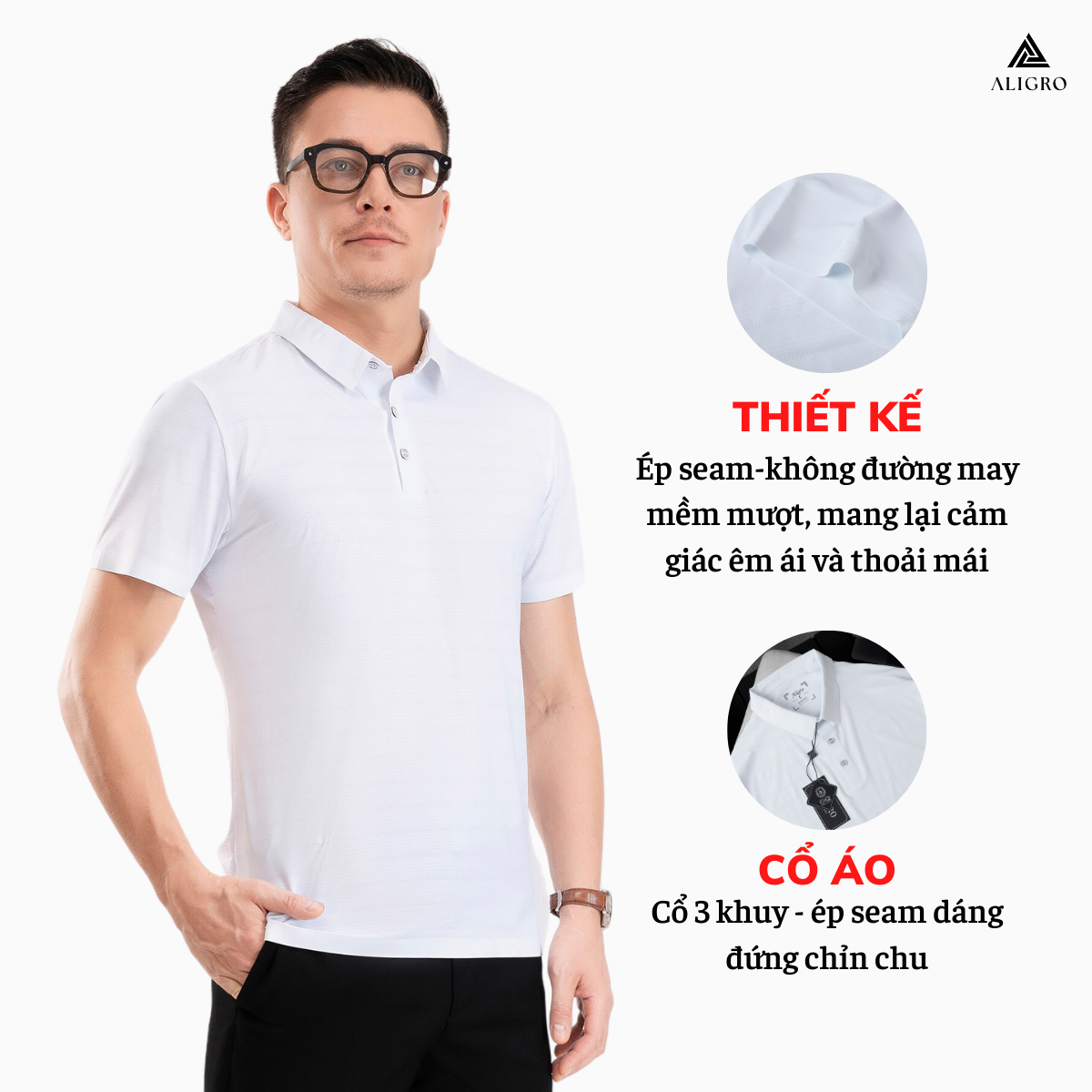 ✨Áo polo golf nam ngắn tay ALIGRO chất vải coolmax kẻ ngang màu trắng năng động ALGPLO116