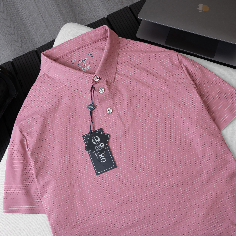 ✨Áo polo golf nam ngắn tay ALIGRO chất vải coolmax kẻ ngang màu vỏ đỗ năng động ALGPLO115