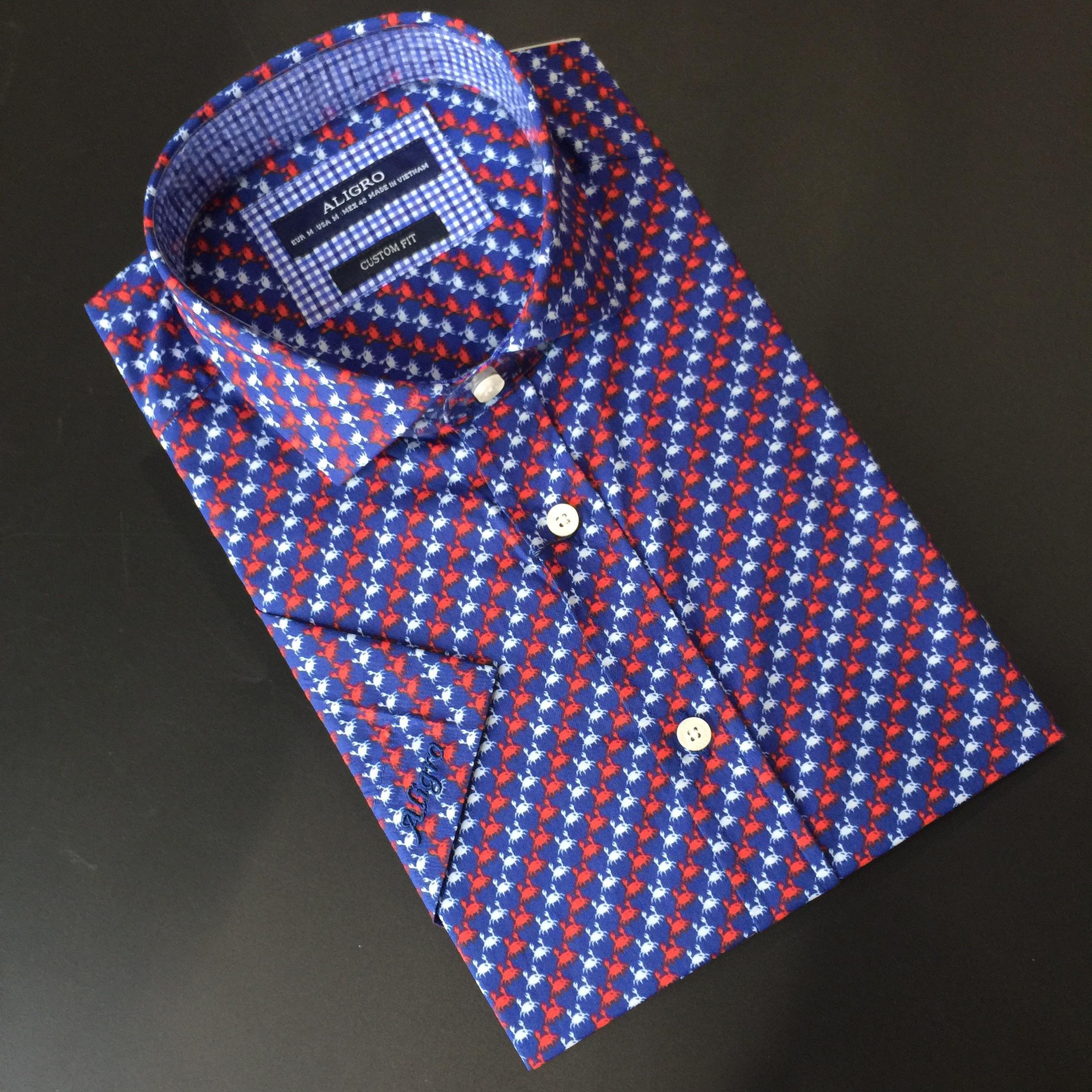 ✨Áo sơ mi cộc tay nam công sở Aligro hoạ tiết con cua dáng Custom ALGS-C86 ( SIZE M)