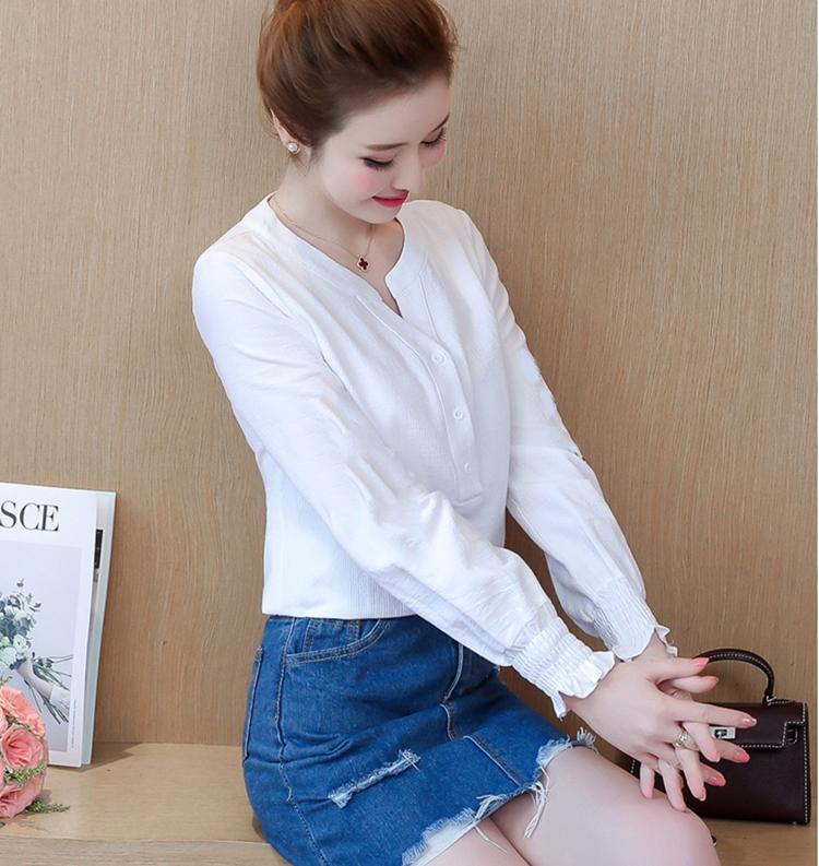 Kiểu dáng: áo sơ mi công sở cổ tim thanh lịch, phối nút duyên dáng, tay dài cài nút phong cách phù hợp công sở, công tác, đi dạy, đi học, đi tiệc Chất liệu: