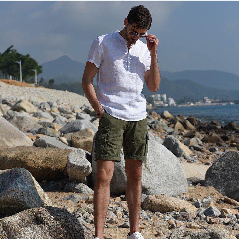 ✨Áo sơ mi linen dành cho nam, trơn cổ trụ, sơ mi hàn quốc Haint Boutique, form vừa