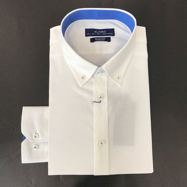 ✨Áo sơ mi nam dài tay ALIGRO cổ bẻ dáng ôm body 100% chất cotton màu trắng phối ALGS190