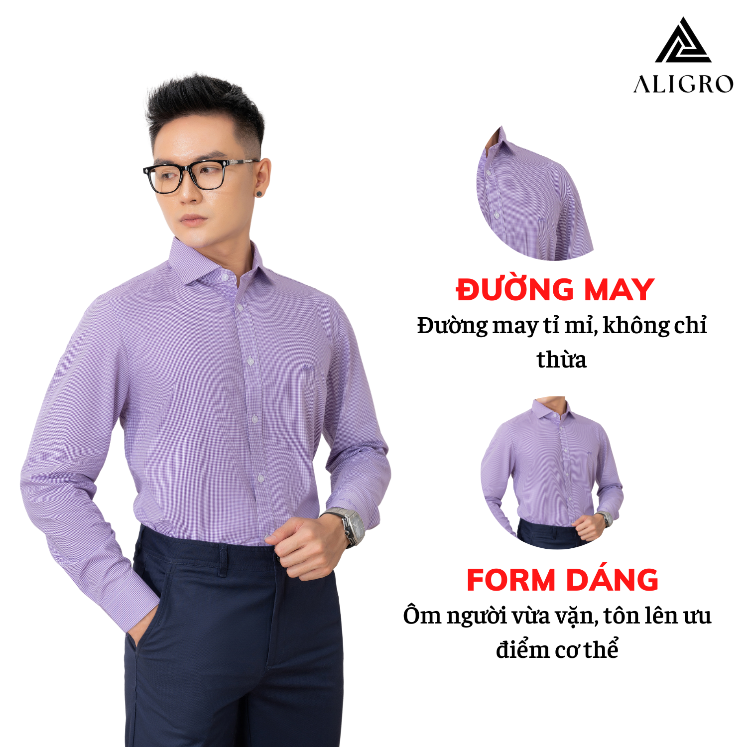 ✨Áo sơ mi nam dài tay ALIGRO màu tím, 100% chất cotton thoáng mát, thấm hút mồ hôi tốt, cổ bẻ, dáng ôm body ALGS153