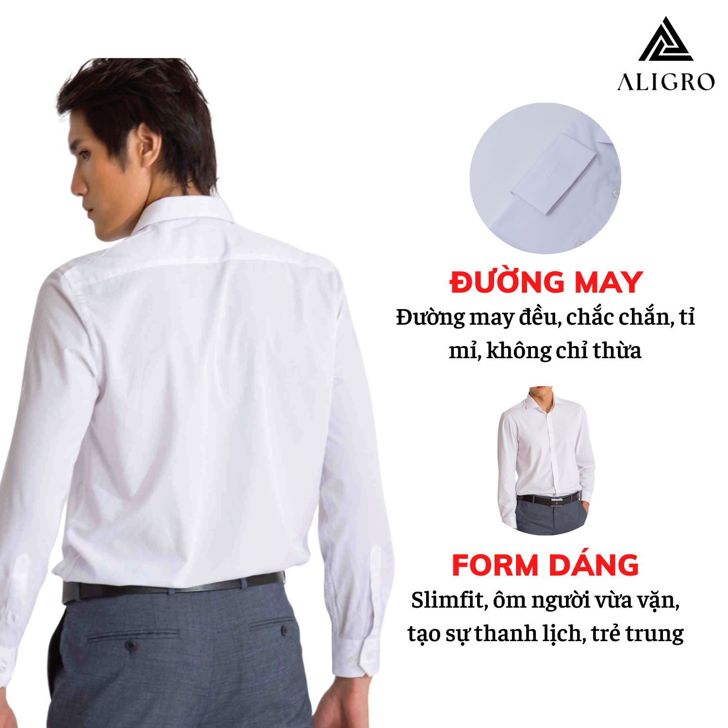 ✨Áo sơ mi nam dài tay ALIGRO trơn màu trắng, chất liệu bamboo sợi tre, thoáng mát, thân thiện với làn da ALGS154
