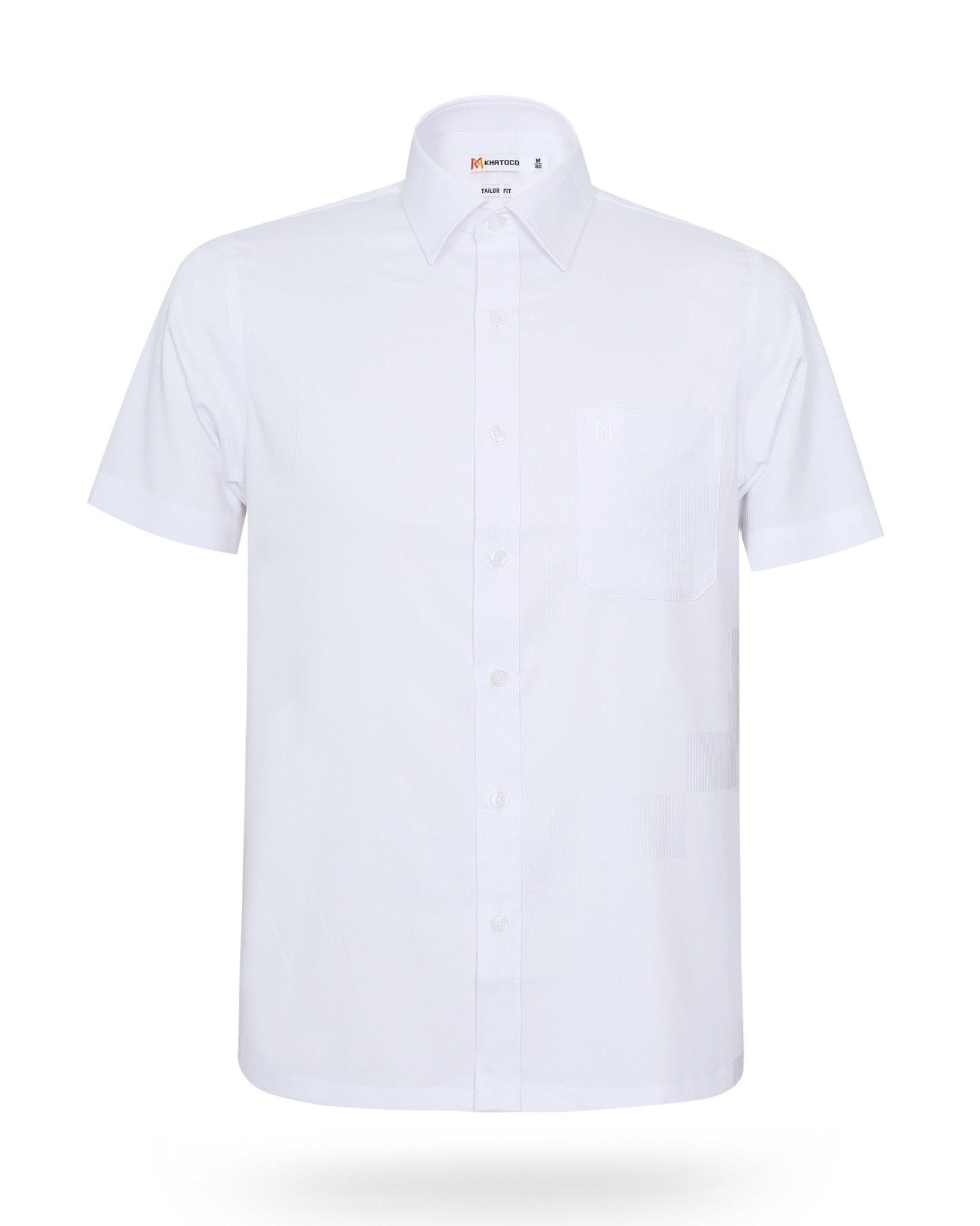 Áo sơ mi nam tay ngắn lai ngang – Khatoco - Mã hàng: A1MN498T2 - Chất liệu: - 77% Polyester (Microfiber) - 19% Viscose (Modal) - 4% Spandex → Vải cao cấp, mềm mại, thấm