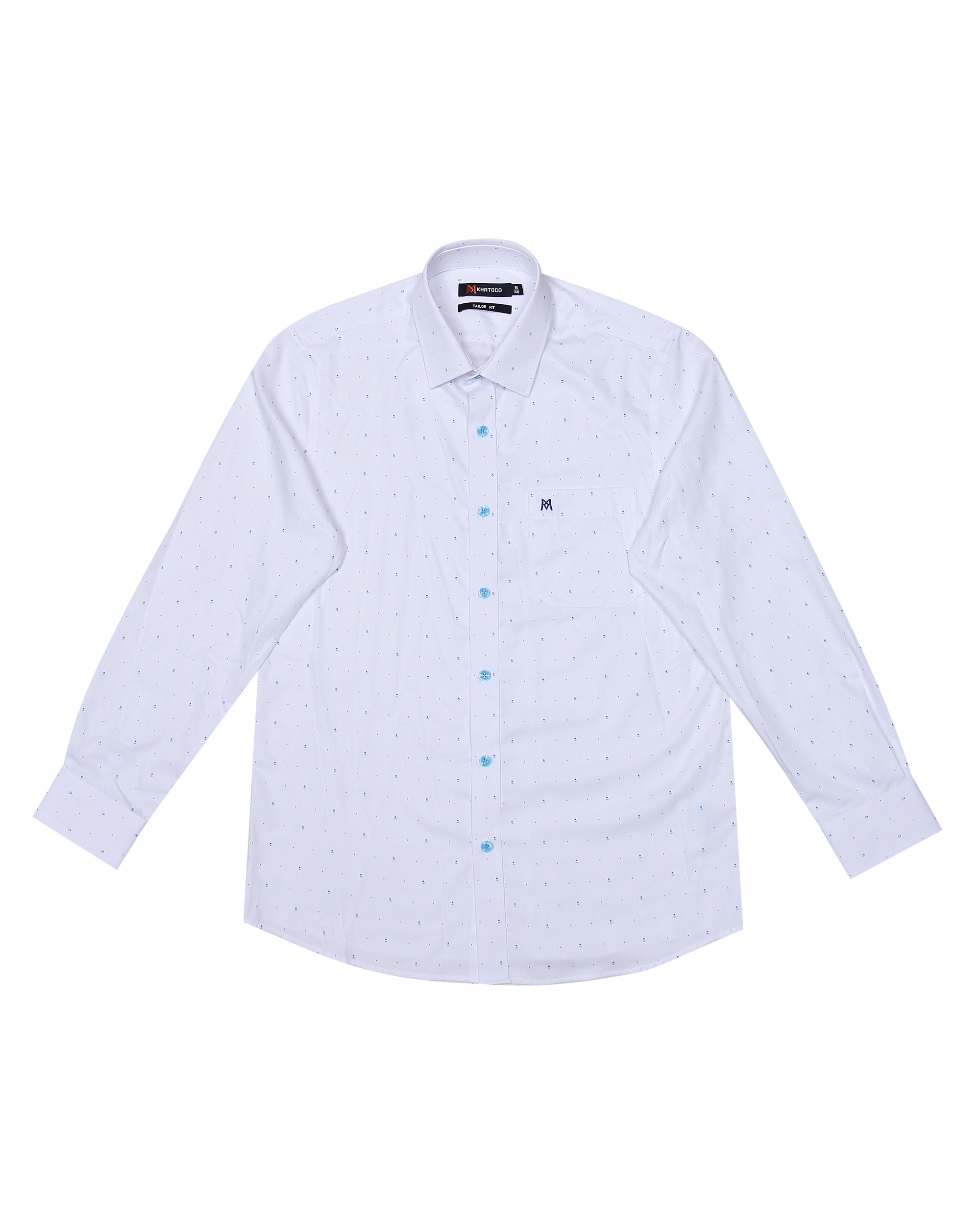 (V) MÔ TẢ: Form Taylor, tai dài Form áo tiêu chuẩn với form áo rộng vừa phải, không ôm sát cơ thể, bó nhẹ ở vùng eo và tay áo. Độ rộng vùng ngực và nách cũng sẽ fit hơn với cơ thể. Không quá rộng như form áo cổ điển. Màu vải nhã nhặn và trung tính dễ dàng phối trang phục tạo sự lịch lãm, nam tính Nút ton-sur-ton khắc logo đẹp mắt phối trọn vẹn màu áo. Logo thêu sắc nét trên túi áo. Chất liệu:50%POLYESTER- 24%COTTON-2%SPANDEX- 24%VISCOSE(BAMBOO) |Mềm mịn|Thấm hút |Kháng khuẩn|Độ thoáng khí cao|Chống tia UV|Chống nhăn|Chống co rút |Nhanh khô|Dễ vệ sinh làm sạch|Đứng phom áo Màu sắc : Màu Xanh họa tiết