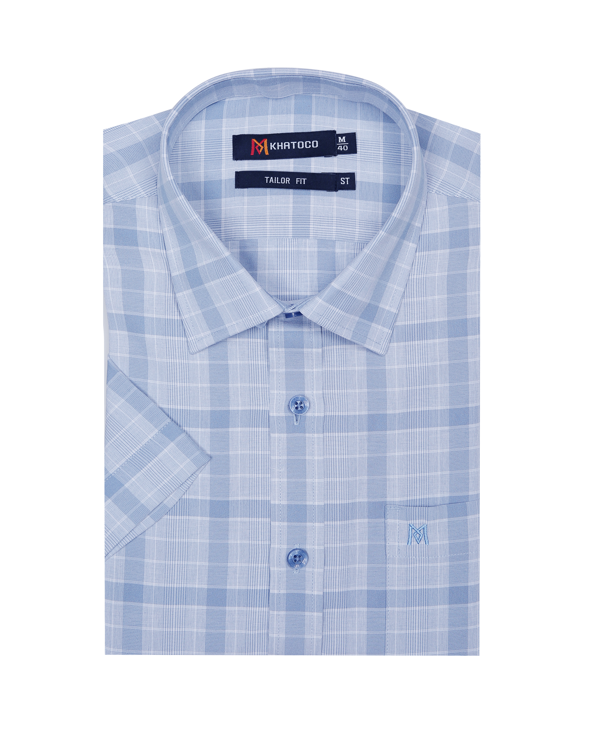 Áo sơ mi nam tay ngắn lai ngang – Khatoco - Mã hàng: A1MN538T2 - Chất liệu: 75% Polyester + 22% Viscose (Bamboo) + 3% Spandex → Vải mềm mại, thoáng mát, co giãn nhẹ,