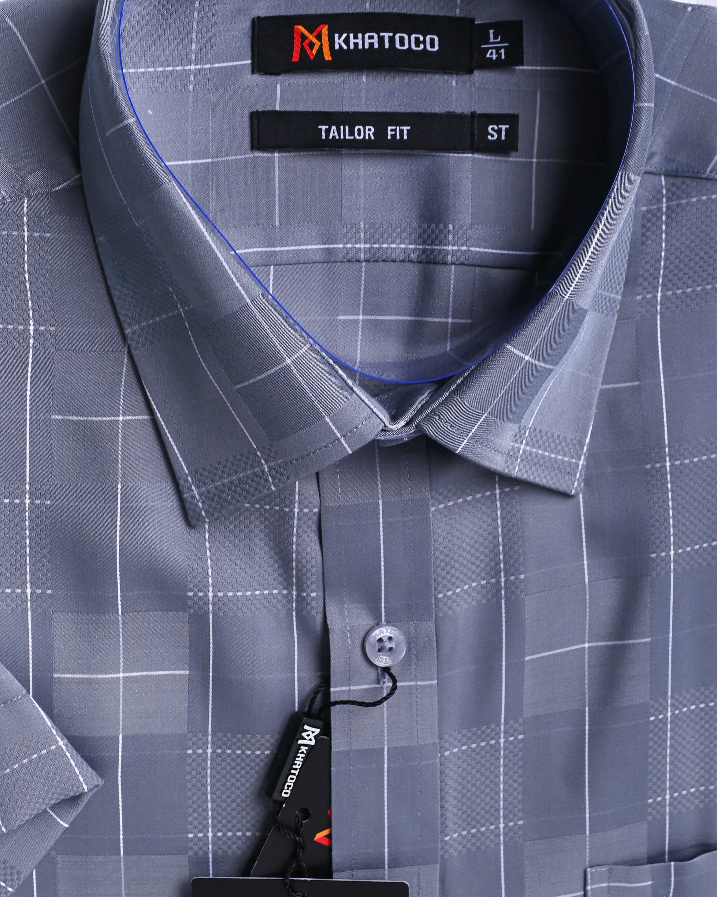 Áo sơ mi nam tay ngắn lai ngang – Khatoco - Mã hàng: A1MN538T2 - Chất liệu: 75% Polyester + 22% Viscose (Bamboo) + 3% Spandex → Vải mềm mại, thoáng mát, co giãn nhẹ,