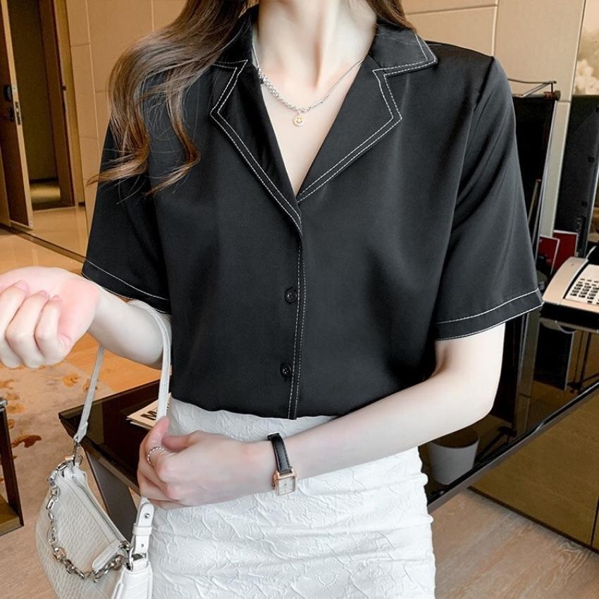 ✨Áo sơ mi nữ kiểu tay ngắn cổ vest form rộng phối viền chỉ kiểu mới Hàn Quốc thời trang PONIVA Cao Cấp Mềm Mịn Thoáng Mát
